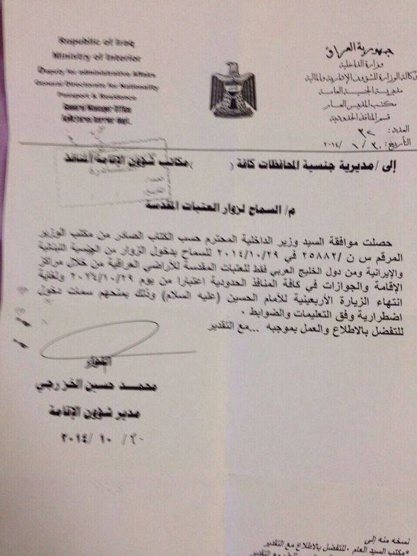 بنابه دستور مقامات عراقی از 29 اکتبر تا اربعین زوار عتبات مقدسه نیاز به ویزا ندارند ...