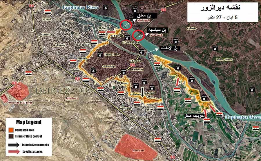 با پیشروی ارتش در حویجه الصقر وحوش داعش به کرانه ی رود فرات عقب نشینی کردند ، بدین ترتیب ارتباط داعش با بیرون از شهر که از طریق پل الانفات امکانپذیر بود قطع شد . پل سیاسیه که از مدتها پیش تخریب شده بود و پل معلق هم در عملیات اخیر ارتش تخریب شد و امکان تردد ندارد .