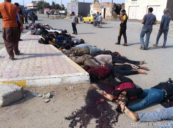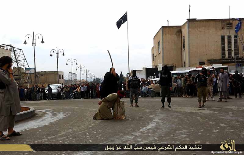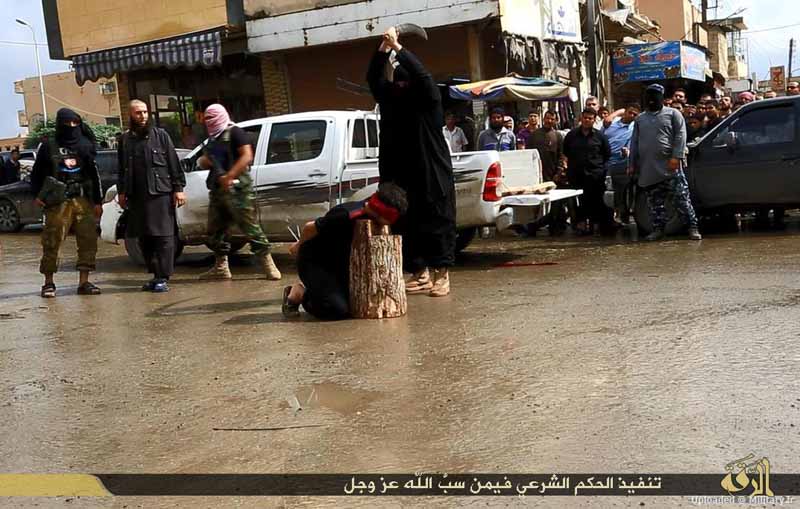 در تازه ترین جنایت تکفیری های داعش در رقه ، تعدادی از شهروندان سوری در میدانهای رقه به بهانه ی توهین به خدا گردن زده شدند .