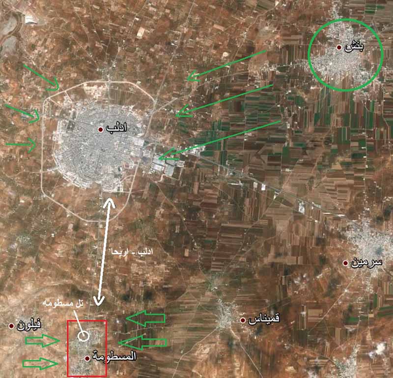 همچنین مسلحین برای گمراه کردن و کاستن تمرکز ارتش از محور اصلی حمله ، حملاتی ایضایی از سمت شمال شرق و جنوب شهر در منطقه مسطومه به منظور مسدود کردن راه ارتباطی ادلب - اریحا انجام دادند که با فضل خدا آن دو هم ناکام ماند.