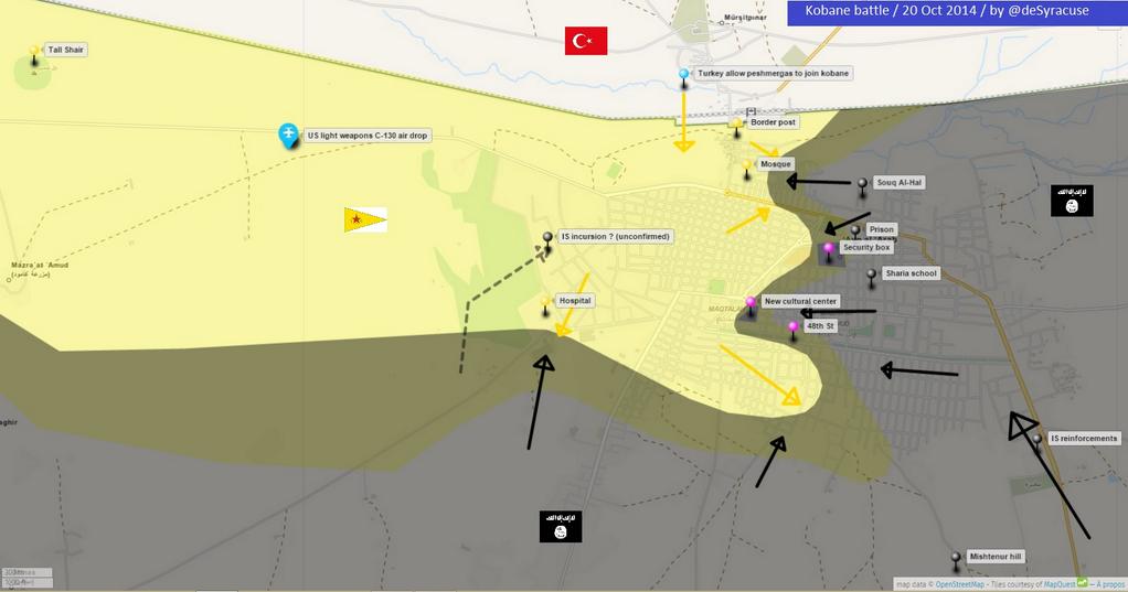 اگر خاطرتون باشه چندی پیش در خبری گفته بودم که کمکهایی به کردهای کوبانی شده ولی فرمانده ی میدانی از گفتن منابع کمکها امتناع کرد ، این خبر قبل از کمک های تسلیحاتی هوایی ( Airdrop ) آمریکا بود ،، اگر اوون کمکها از سمت آمریکا بود مطمئنا کردها بدون هیچ ملاحظه ای اعلام میکردند که شاهد بودیم اینکار رو نکردند ...