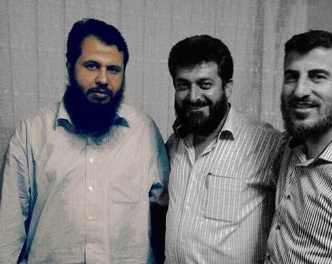 حسان عبود در کنار ابو عیسی الشیخ (نفر وسط) رهبر جبهه اسلامی و زهران علوش فرمانده نظامی جبهه اسلامی سوریه