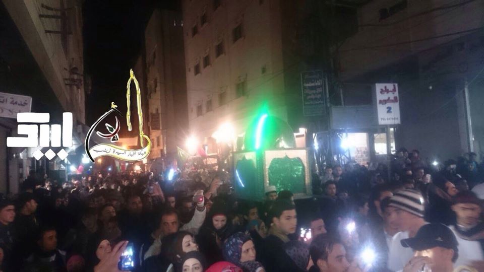 پیکر چند تن از شهدای حزب الله در سوریه، امشب در شب میلاد امام علی(ع) در حرم حضرت زینب سلام الله علیها تشییع شد .
