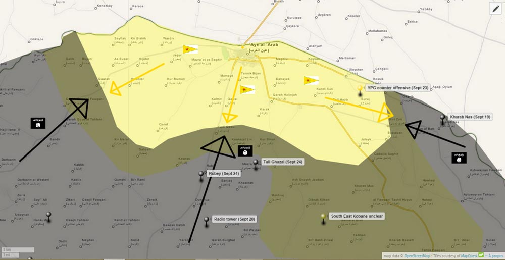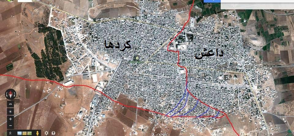 در تصاویر زیر آخرین موقعیت جبهه ی نبرد در کوبانی مشخص هست .